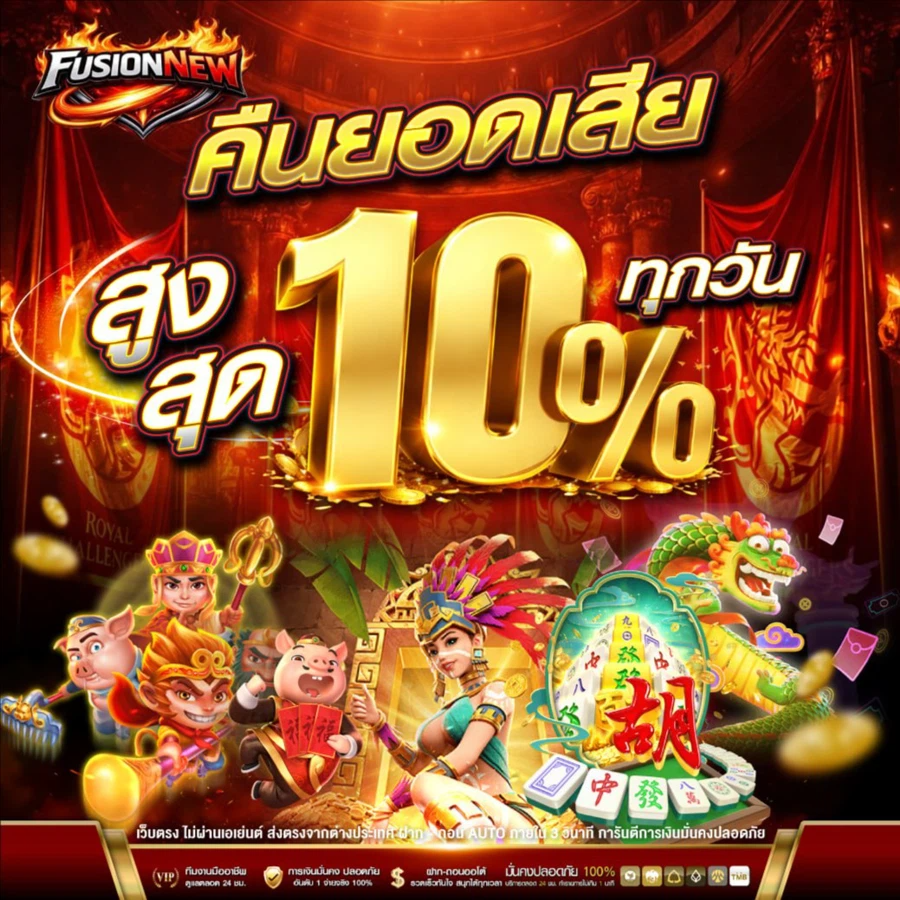 นอกจากนี้ ทาง Fusionnew ยังใส่ใจสมาชิกเก่าด้วยโปรโมชั่นคืนยอดเสียรายวันสูงถึง 10% ไม่ว่าคุณจะเล่นเกมไหน ก็มีโอกาสได้เงินคืนทุกวัน แถมยังมีโบนัสเพิ่มพิเศษสำหรับการฝากประจำวัน ยิ่งฝากมาก ยิ่งได้โบนัสเยอะ โดยเฉพาะช่วงเวลาพิเศษที่มีการจัดกิจกรรมแจกโบนัสเพิ่มเติม