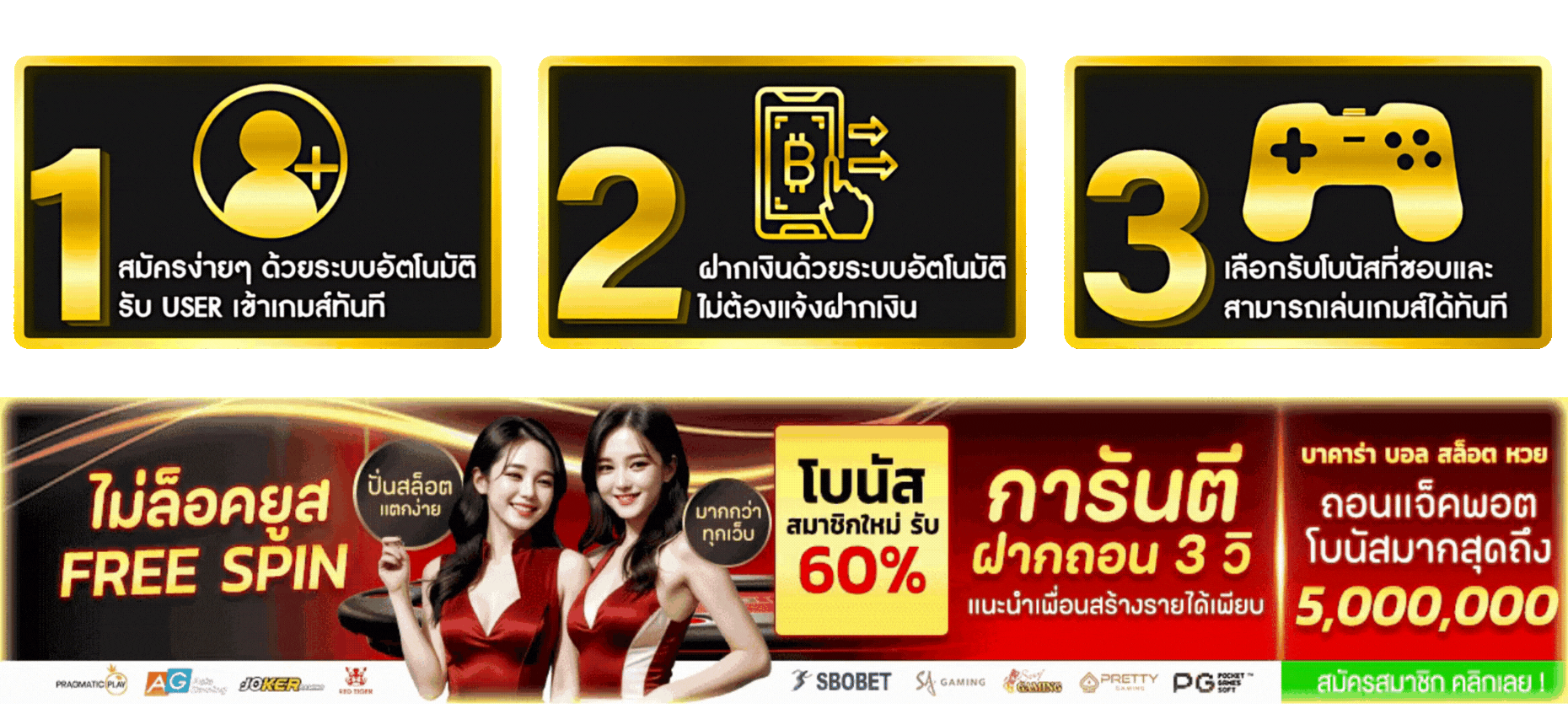 ตอบ : - ระบบฝาก-ถอนอัตโนมัติรวดเร็วภายใน 30 วินาที - มีเกมพนันให้เลือกเล่นมากกว่า 1,000 เกม - รองรับการเล่นผ่านมือถือทุกระบบ - มีโปรโมชั่นแรกเข้า 100% - ฝากขั้นต่ำเพียง 1 บาท
